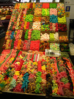 Chrissy, Linden, Ellen, Cait and I traveled to Barcelona. On Thursday our plane took off bright and early at...I believe it was 7am...anyhow it was super early. When the plane got closer to Barcelona I was able to see the sunrise from the plane--beautiful and a great way to start our trip. Once we got off the plane we began to figure out how to get out of the airport and to the hostile. Our hostel was location wise-awesome-it was off of a main street, fairly close to the metro, and about a 25 minute walk to the Mediterranean Sea. We had a hostile with 8 beds, and on the second night we were joined by three people, funny thing was they were three guys from our university program. Unfortunately the first place we ate wasn't the best, the only good part was really the dessert. But we didn't let that stop us from continuing with a good day. We stopped into the Boqueria market-the largest market in Barcelona. It was absolutely incredible with fresh fruit, vegetables, seafood, meat, chocolates, gummy candy, you name it, it was probably there and fresh. In the fruit section they also made fresh juices for only 1 euro, and at night before they closed you could get 2 for 1 euro. Delicious :)